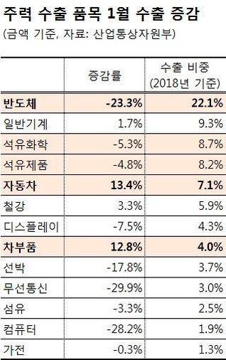 대한민국 품목별 수출 비중 순서*