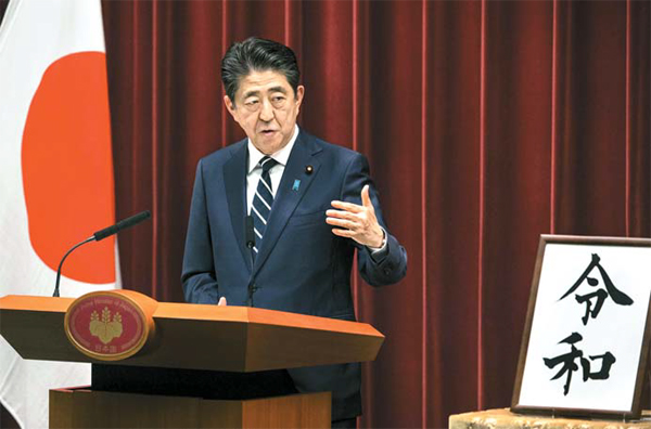 -"레이와에는 사람들이 아름다운 마음을 맞대는 가운데 문화가 태어나고 커 나간다는 의미가 담겨 있다. 봄이 오는 것을 알리는 매화처럼 한 사람 한 사람의 희망을 기반으로 모두가 꽃을 크게 피울 수 있는 일본이 되기를 바라는 기원을 담았다"