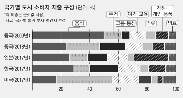 = 2000년 중국 소비자는 소비의 약 50%를 음식에 지출했지만 지난해 24%로 줄었다.